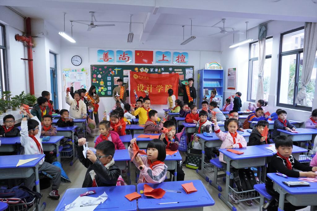 12月13日下午,阳光学院设计学院的志愿者们前往魁岐小学开展以“我的梦想”为主题的手工课支教志愿服务,由设计学院办公室主任兼团委书记吴其枝老师带队,7名志愿者参与,由2019级广告学专业黄育秀主讲。