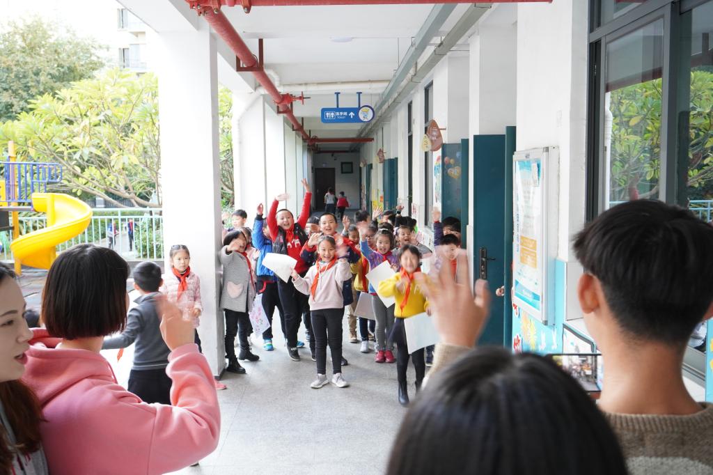 当志愿者们离开教室的那一刻全班同学冲出教室依依不舍的挥手和久久不愿意停下的“谢谢老师” 、“欢迎下次再来”,每一位志愿者被小朋友们感恩意识深深感动。一名志愿说到:“这次重返小学校园体验了两节课的“园丁”工作,深深感到老师们的不容易,孩子们天马行空的想象力和天真烂漫的笑容深深打动了我,也让我明白了老师这份工作的神圣感和责任心,希望还能有机会参加这样有意义的活动。”
