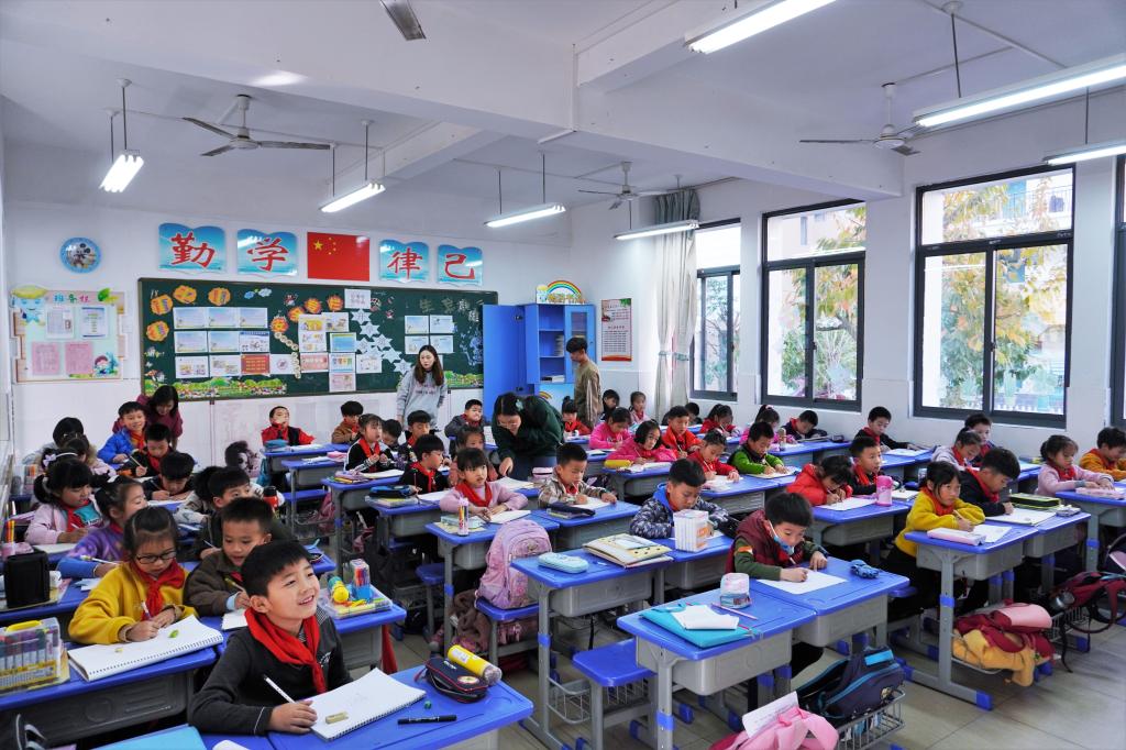 2019年12月13日下午,阳光学院设计学院美术学专业的志愿者们前往魁岐小学二年级(3)班开展“绘新年祝福”为主题的绘画支教志愿服务,由设计学院办公室主任兼团委书记吴其枝老师带队,7名志愿者参与,由2017级美术专业徐泽丽主讲。