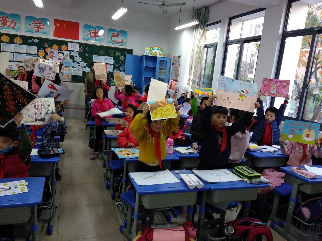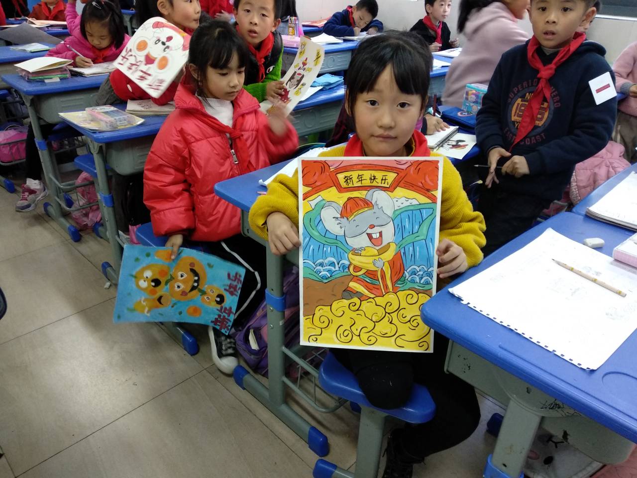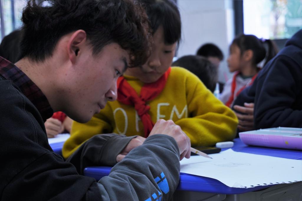 志愿者徐泽丽精心准备的授课内容及出色课堂掌控能力吸引了小朋友,以2020年属相为“鼠”开展本此绘画课。在其他志愿者与主讲志愿者默契合作下两节课小朋友们认真的跟着志愿者们绘制新贺卡,顺利完成新年贺卡绘制。
