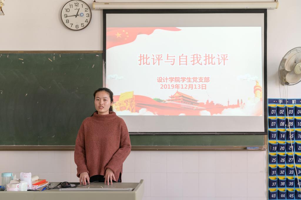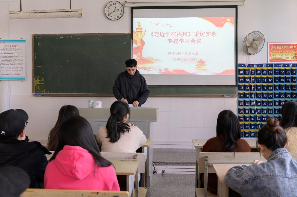 为不断端正青年党员入党动机,切实提升党性修养,2019年12月13日,设计学院学生党支部于文科楼403教室召开期末民主生活会,开展党员批评与自我批评,进行民主评议党员会议,并组织学习了《习近平走进福州》相关专题采访内容,设计学院学生党支部全体党员参加。