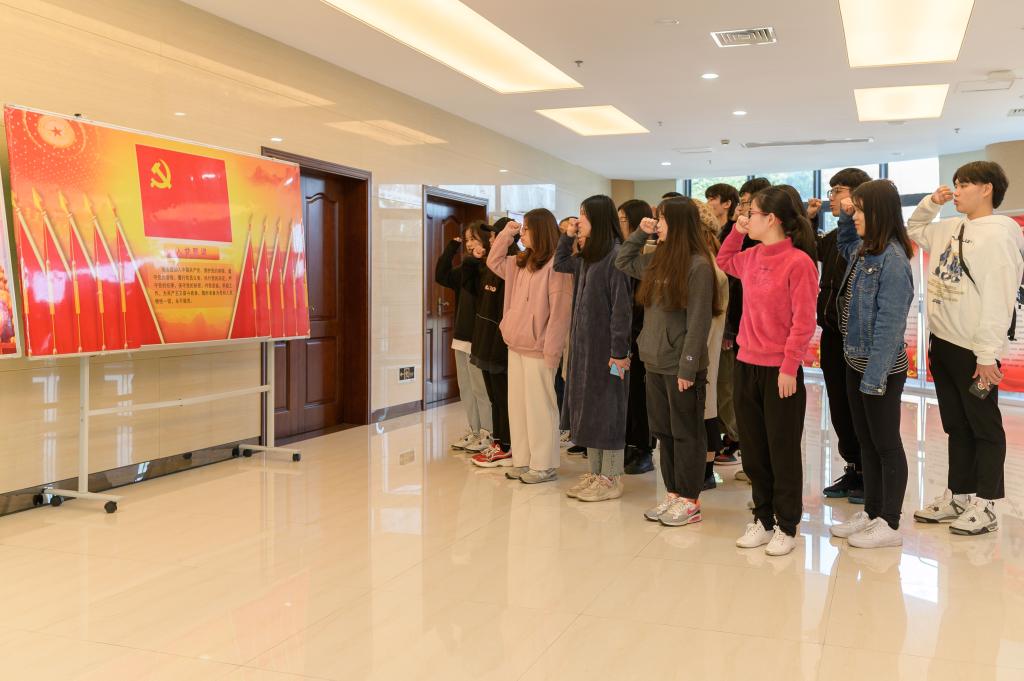 2019年12月18日,设计学院学生党支部组织19名新发展的预备党员于学校图书馆四楼入党誓词展板面前进行入党宣誓。