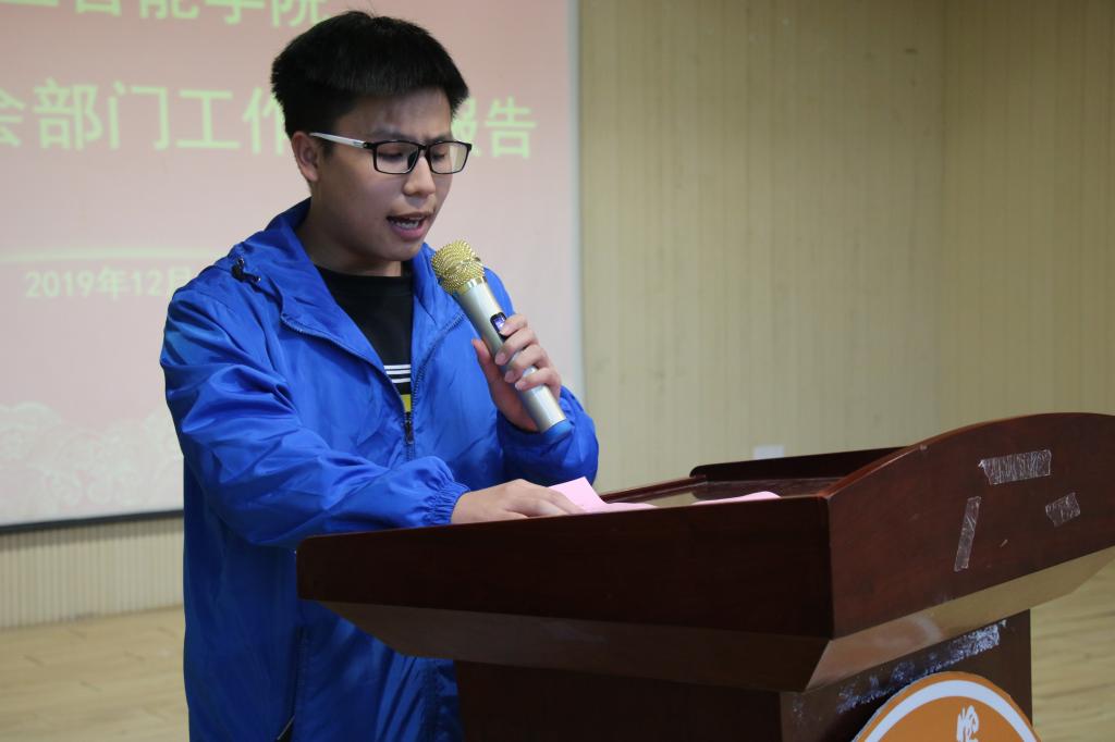 为进一步凝聚我院团学力量,增强其服务意识与责任意识,不断提高学生干部工作素质和自身素质。我院于12月16日晚在商学楼408召开了2019-2020年度第一学期部门工作述职报告会,集中听取了12名各部门主要负责人和1名主席团成员的述职报告。我院团委书记沈晓琼老师及团学全体成员出席了本次会议。