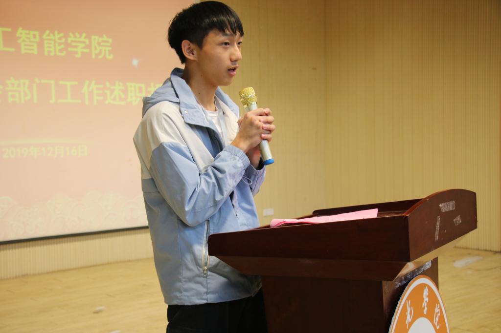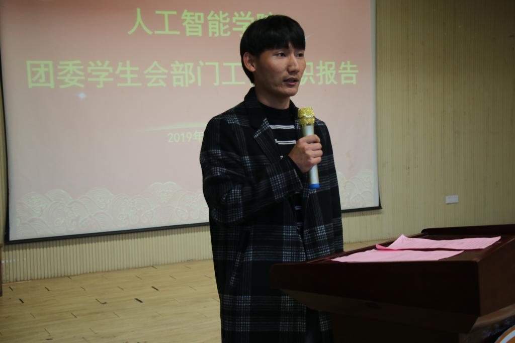 会上,主席团代表及各部门代表分别就本学期的工作做出了详细的总结,就下半年的工作做了具体的计划。主席团代表陈燚同学概述了本学期以来团委学生会所取得的荣誉与成就,他表示在接下来的日子里,AI将继续齐心协力。戮力前行办公室代表姚文文同学总结了本学期协助团委举办的各项会议,她表示,今后的学期里,办公室全体成员将始终坚持全心全意为全院同学服务!体育部代表武金涛同学就本学期以来协助开展的相关体育赛事及事务进行简单概述,分享了他们在工作当中心得及感悟,外联部代表黄前长同学则就就如何按质按量完成本职工作的同时提升自我这一话题进行报告。会后,沈晓琼老师进行总结,她认为述职报告是一项非常重要的环节,既可以总结经验,又可以提升自我,她建议我们在今后的工作里应该将这一环节延续下去。