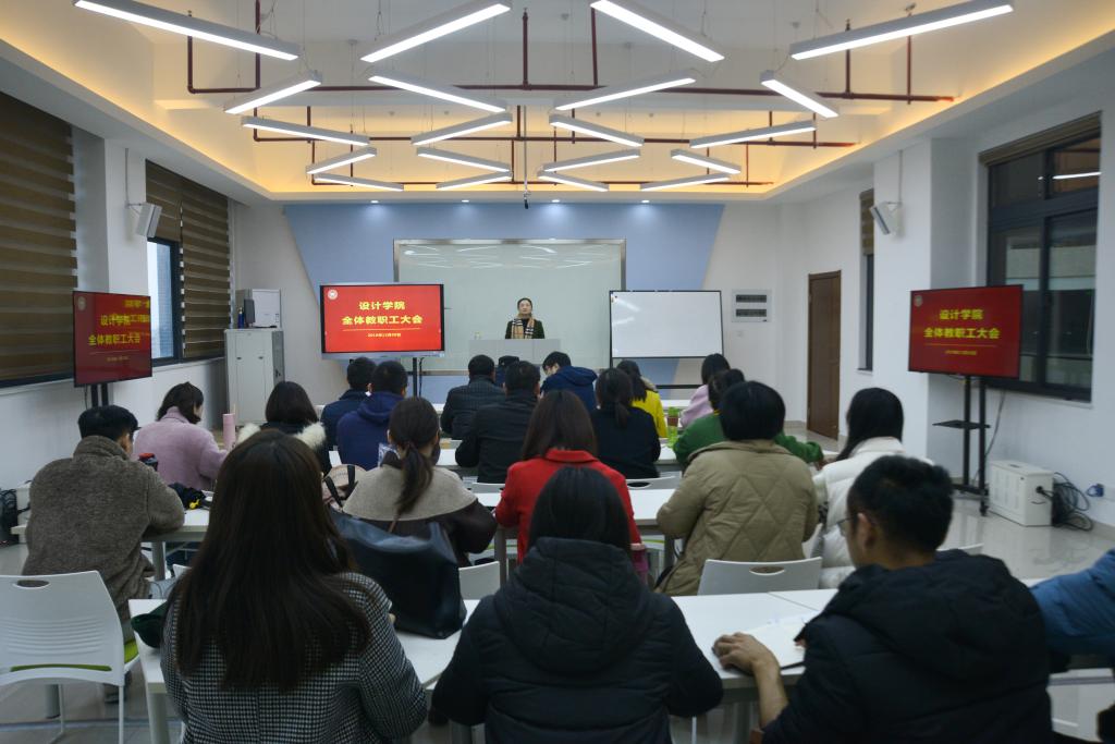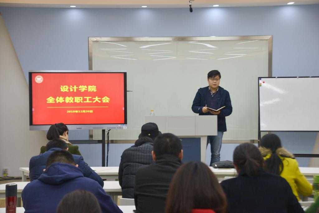 12月20日下午,设计学院在行政综合楼602召开期末工作会议。学科带头人翁炳峰、党总支书记宋海霞、副院长卢健涛、院长助理江信桐及全院教职员工参加了会议,会议由党总支书记宋海霞主持。