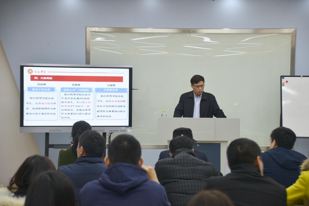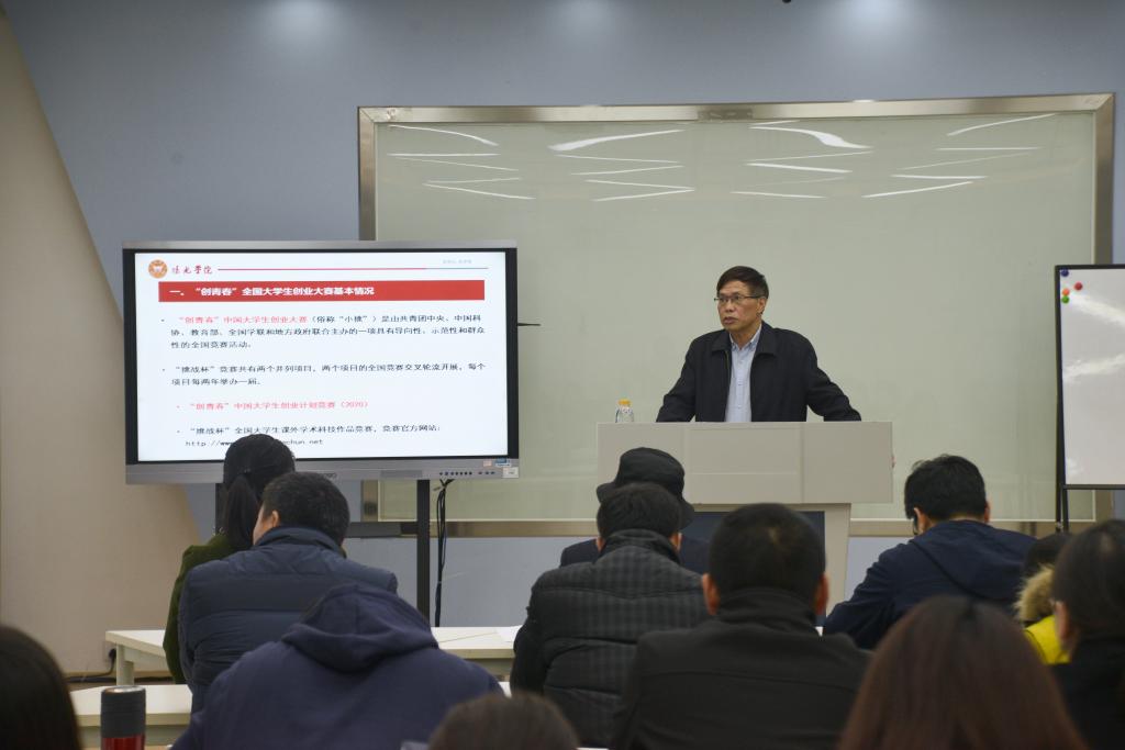 会上,副院长卢健涛为大家做了2020年“创青春”中国大学生创业大赛与福建省第六届大学生艺术节的赛事介绍与工作部署。首先从以下两个方面进行了2020年“创青春”中国大学生创业大赛的动员,一是对大赛基本情况、大赛重要性、赛事要点、大赛类型、评审有关事项、时间安排表、任务要求、往届大赛情况做了详实有序的梳理与解读;二是在项目选择、参赛思想与创意方案设计等方面提出了建设性意见与建议。副院长卢健涛强调,2020年“创青春”中国大学生创业大赛属“A”类大赛,设计学院全体教师应集思广益,发挥专业优势,积极参与,持续执行,朝着省赛金奖的目标努力。