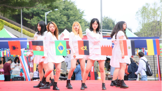 舞姿绰约,步履轻盈,微风正好的冬日当然少不了火热的外国语学院文化部漂亮小姐姐们演绎的拉丁舞来点燃国际文化节的激情。更有节奏灵活的动感桑巴舞,曼妙婀娜的热辣韩舞和热血沸腾的hiphop说唱改编表演让嘉年华的舞台光芒四射,同时也感谢阳光学院社团联合会提供的节目支持,为国际嘉年华现场的观众们带来精彩纷呈的视听盛宴。
