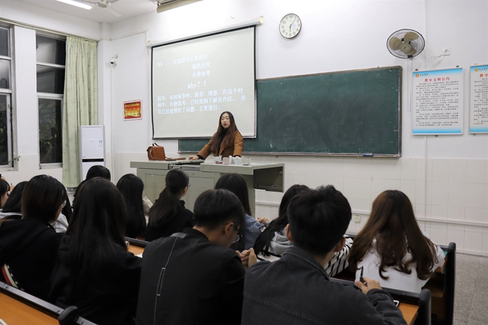 培训会上,周郭灵智老师就如何写好一份策划向大家提出应先了解策划的目的是什么、要做什么、需要达到什么样的效果,在此基础上通过带入不同的角度来完善每份策划,并逐一的分析策划内容及格式,使得大家充分明白一份策划不仅需要严谨的格式,更要通过贴近现实的思考方式来编写。周郭灵智老师在讲述如何办好一场活动时,让大家明白了在每场活动开始前都需在脑海里预演一遍活动的整个流程,以确保活动的顺利进行。最后,周郭灵智老师更是希望学生干部在日后的工作中能尽力把每件事都做到最好,在面对困难时能够保持冷静的思考,解决问题。
