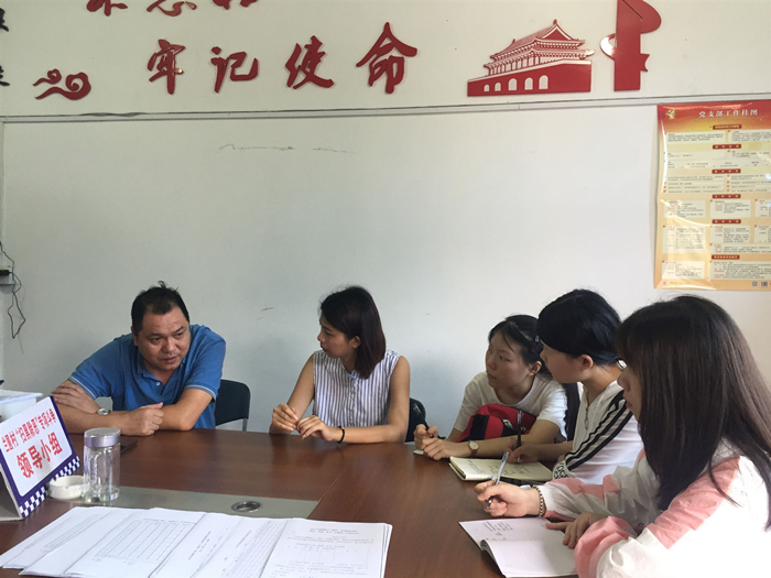 团队抵达村委会,表明实践队一行人的来意后,兰圃村党委书记林秀旦热情接待,向一行人介绍当地的红色历史和生态文明建设现状,同时提出了发展中遇到的困境,实践队成员利用专业优势提出了促进兰圃村经济生态建设的意见。