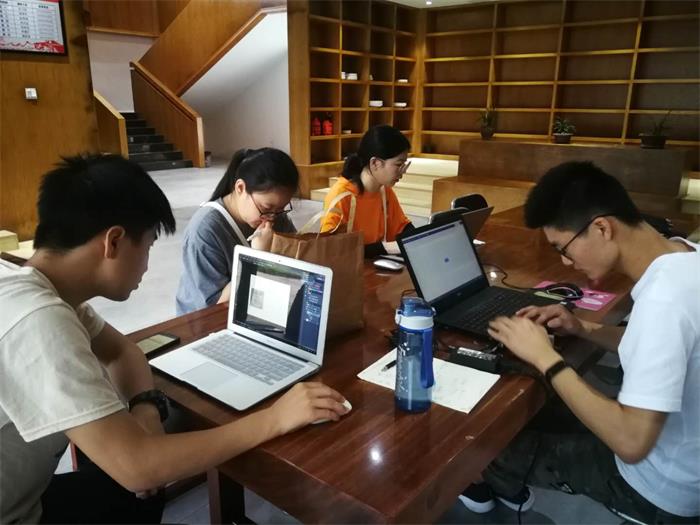 为了让暑期社会实践成果得到完美展示,7月7日上午,团队聚集在白玉书屋对展示初稿进行分析,并制定出修改方案。
