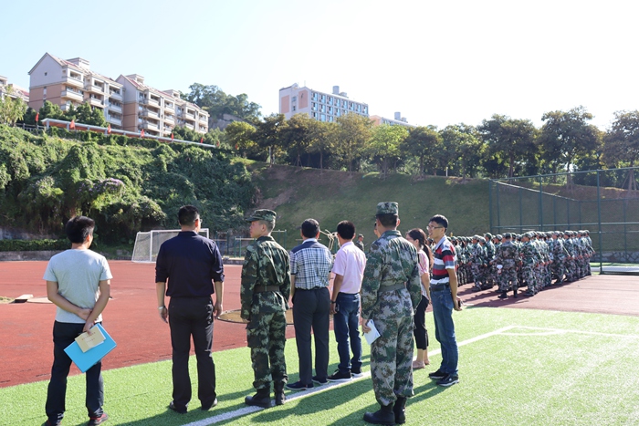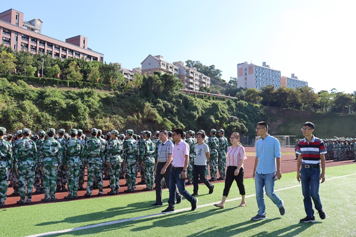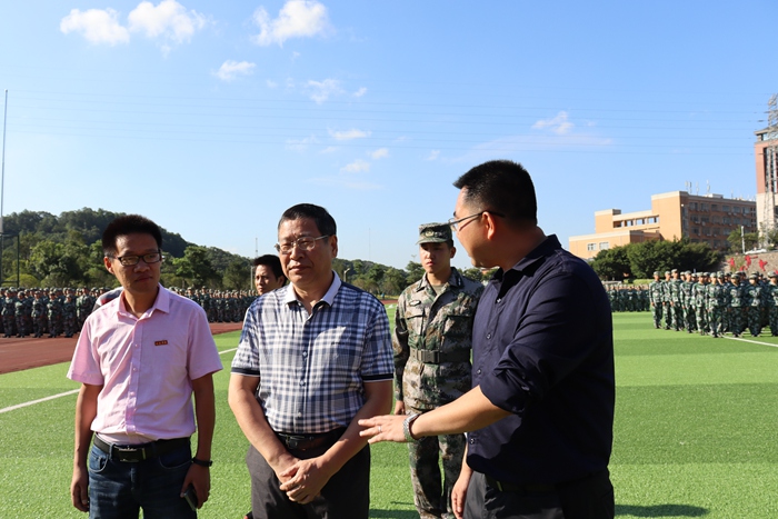 为了解商学院新生军训生活情况,体现学院的人文关怀。10月17日上午,商学院执行院长黄章树教授、商学院党总支书记王福清老师、商学院院长助理洪震副教授、商学院院长助理范太胜副教授、商学院办公室主任李榕老师以及商学院新生辅导员陈其专老师来到新生军训现场,亲切问候了2019级军训新生和教官。