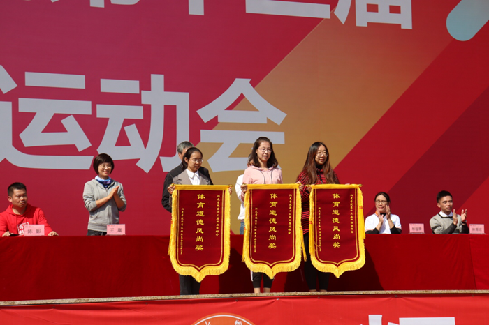 闭幕上,汤德平副校长对裁判员团队表示了由衷的感谢;总裁判长张亮老师宣布学生团体总分、教职工团体总分;党委宣传部陈影老师宣布体育道德风尚奖获奖名单。通过我院师生的奋勇拼搏和辛苦付出,我院荣获“体育道德风尚奖”、“学生团体总分第三名”的优异成绩。