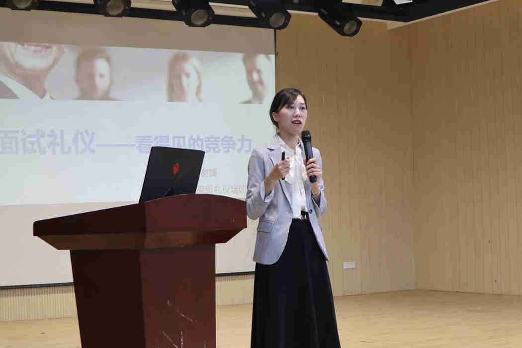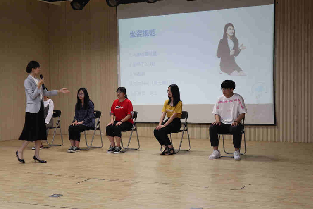 讲座上,谢婧老师邀请现场同学演绎情景剧,更加直观地体现当代面试礼仪的重要性。她表示,给面试官留下干净整洁的第一印象是非常有必要的;通过与现场同学互动,纠正站姿、坐姿、说话语调等各方面常见的一些礼仪错误;结合自身经历向同学们告诉保持职场竞争力的秘诀在于终生学习。讲座的最后,周郭灵智老师希望此次讲座能够给同学们带来一定的启发,能对同学们今后的学习和工作有所帮助。