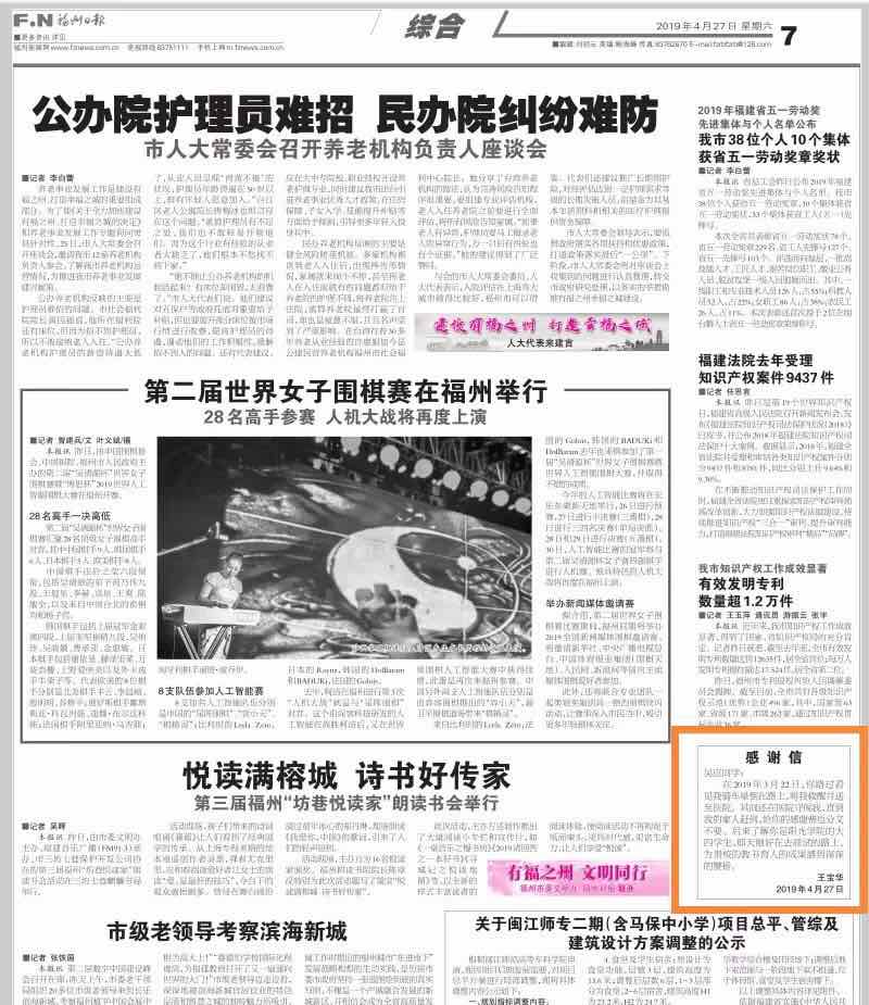 “你路过看见我骑车晕倒在路上,将我救醒并送至医院。其间还在医院守候我,直到我的家人赶到,给你的感谢费也分文不要……”这是4月27日刊登在福州日报的一封感谢信,短短百字道不尽王宝华一家对阳光学院大四学生吴应的感激之情。